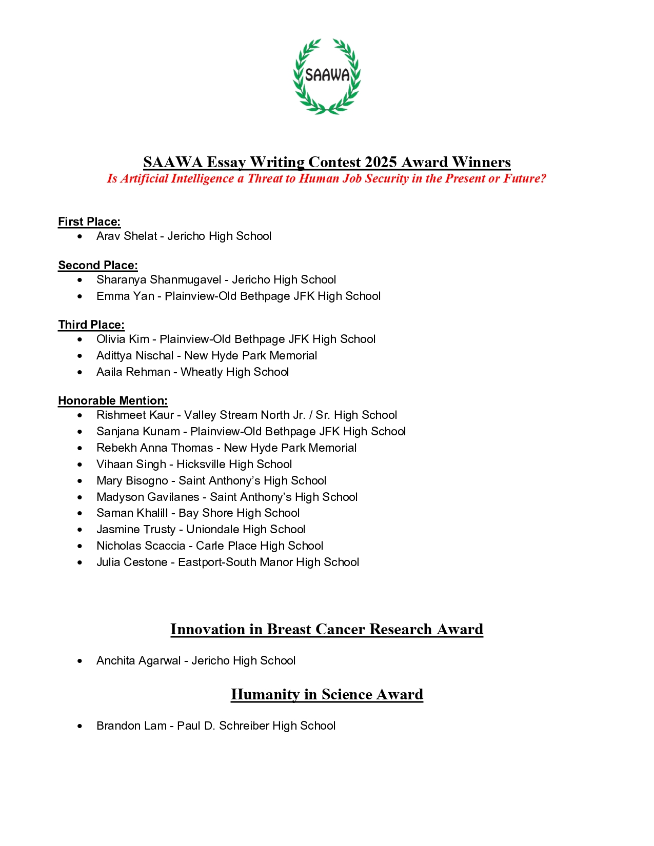 South Asian American Women's Alliance seeks to encourage, promote leadership and innovation among students in STEM fields to help build tomorrow's workforce among the community.
