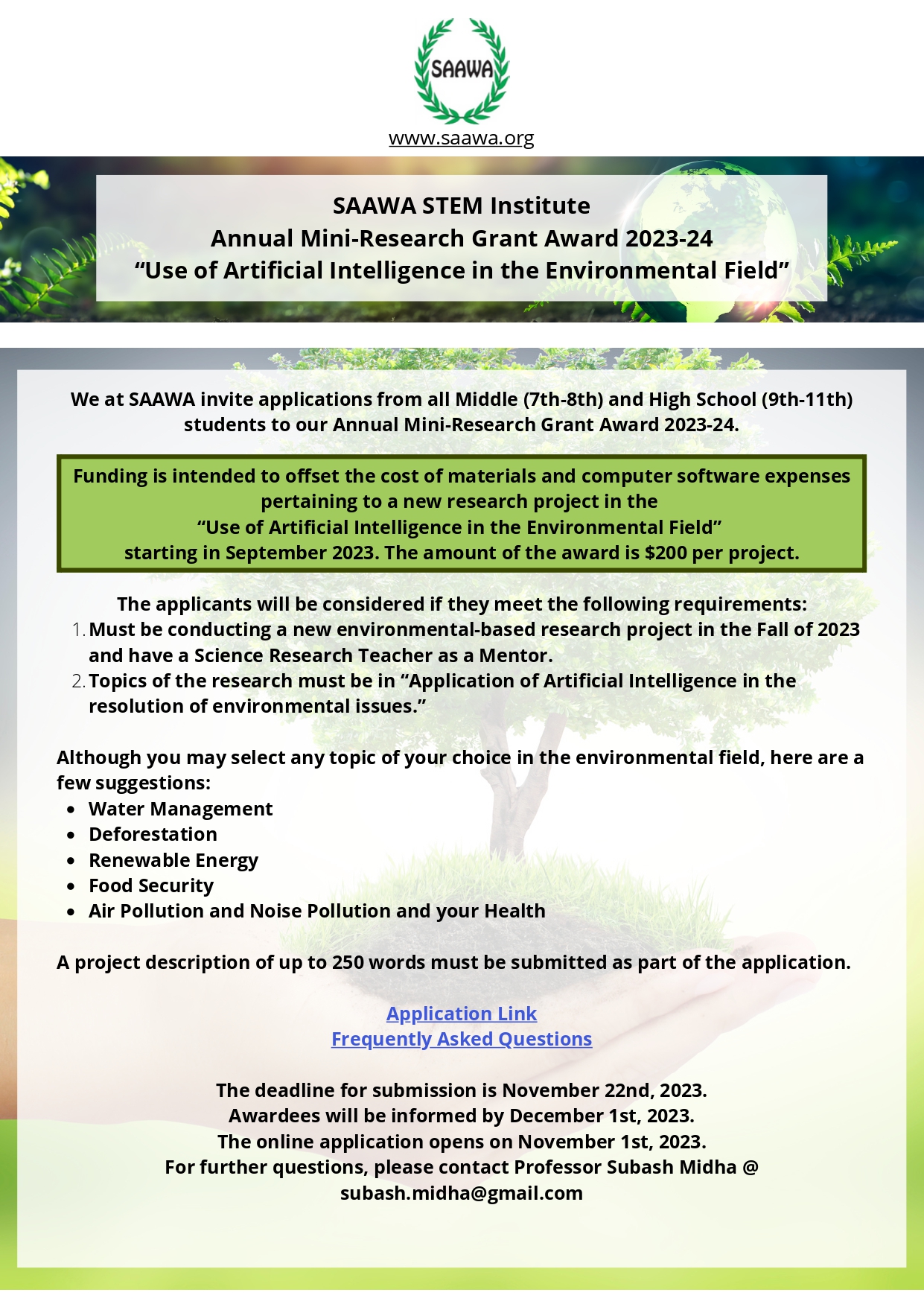 SAAWA Annual Mini - Research Grants Award 2023 - 24